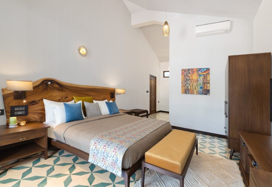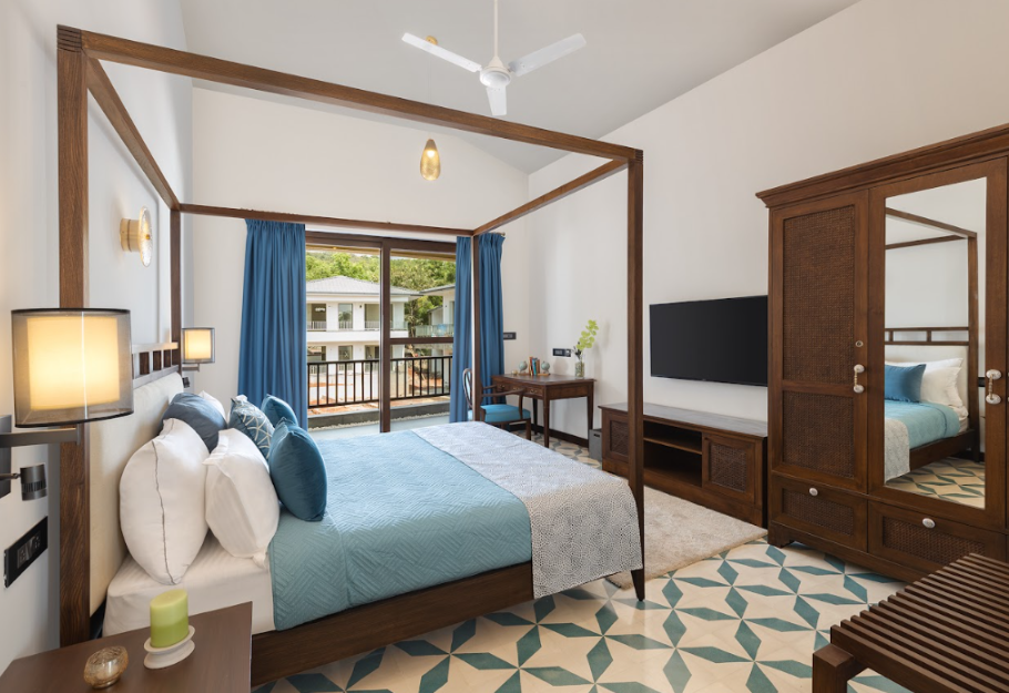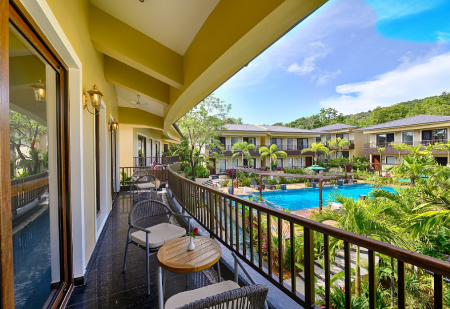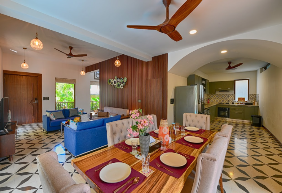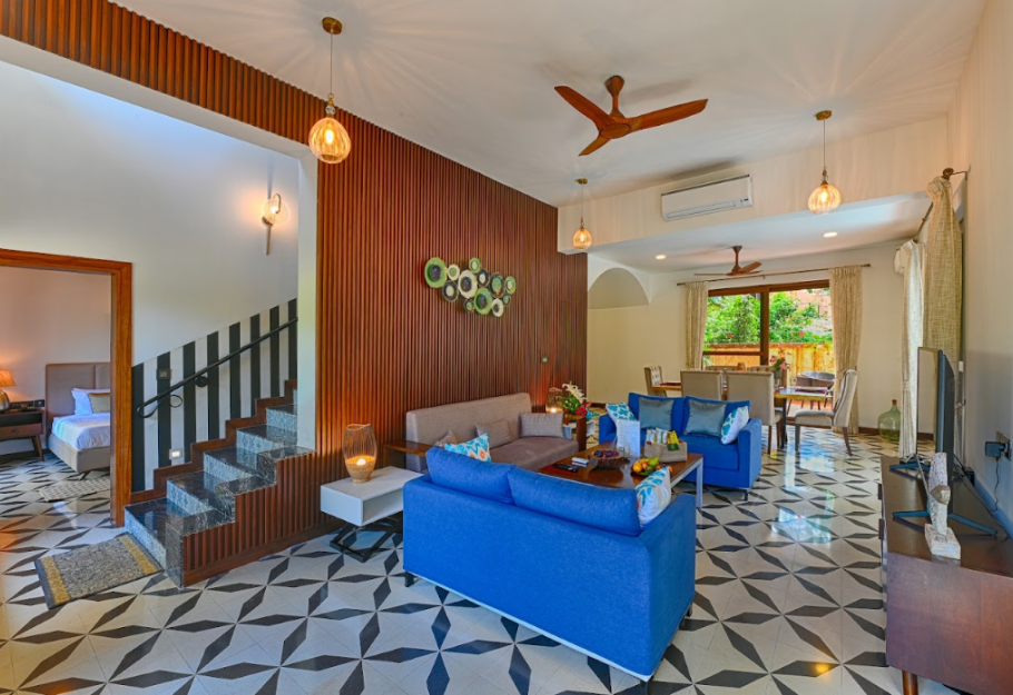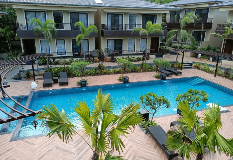 An ultra-modern property set in the Prime location of Assagao, the villa is located in a gated community which embodies an enchanting Bali resort vibe. It offers relaxation, privacy and direct access to a private pool as well as a huge common pool overlooking the green hills of Assagao, Goa.