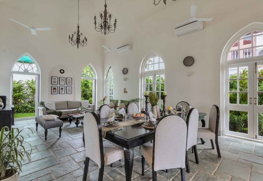 An Ultra Luxurious villa, located in the most upscale locations of Goa aka Assagao; it rests amidst the lush greenery & fauna of this beautiful quaint village. Aah! What better way to savour Goan Susegad than to live stylishly and comfortably in the heart of it? 10 Minute drive to Vagator Beach & a stone’s throw away from all the best restaurants Goa has to offer (I.e Jamun, Izumi, Tamil Table, Gunpowder, Mojigao etc)