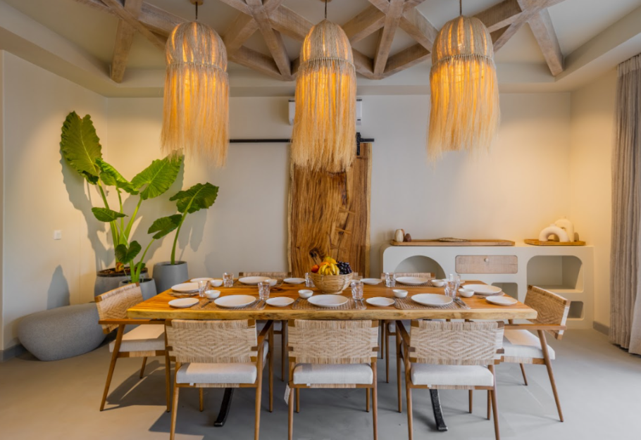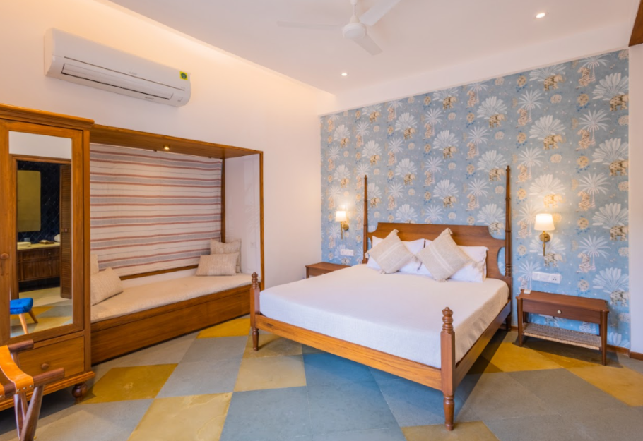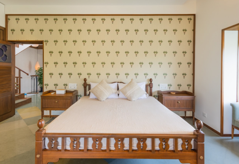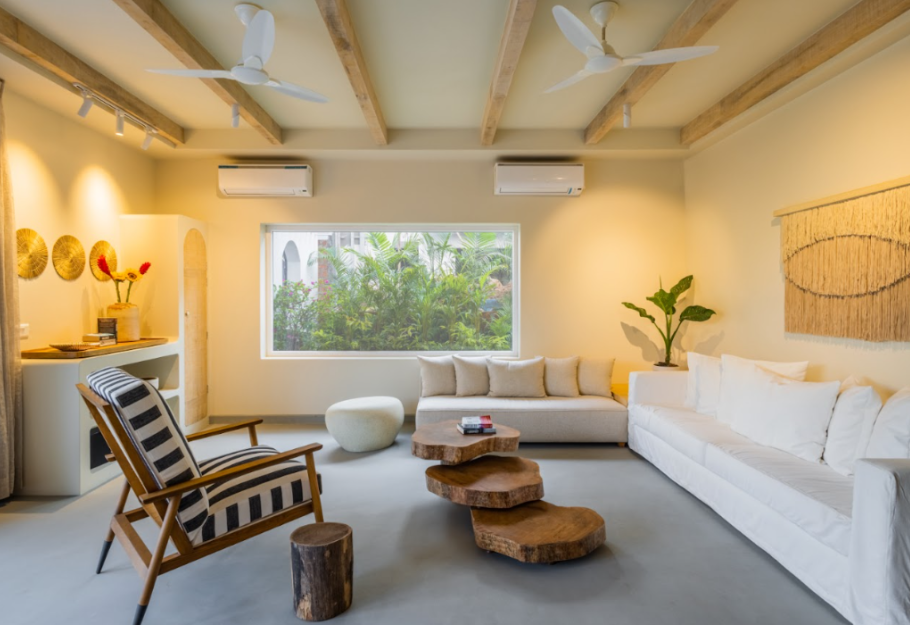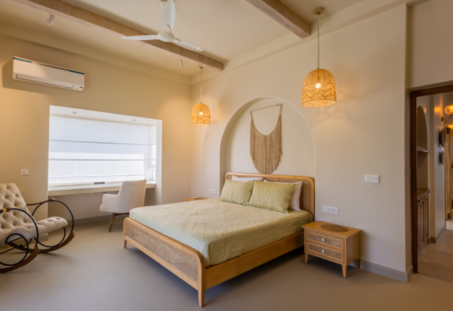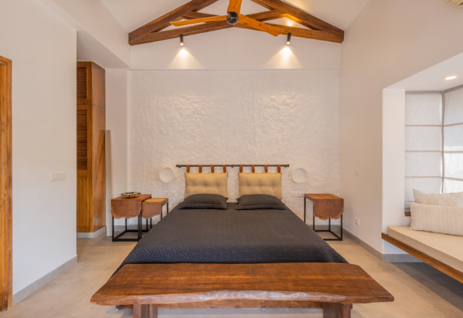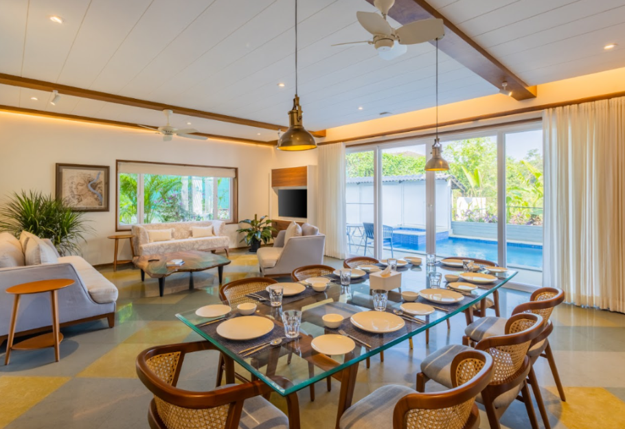 This gorgeous 7BHK villa offers a fresh take on modern bohemian look. Its immaculate interiors will transport you to a world of beauty and luxury. The interiors feature earthy tones paired with wooden boho-chic furniture. Each bedroom is unique with an individualistic characteristic. This villa's large size makes it ideal for big groups. The highlight of the villa is the sunny lap pool which comes with a jacuzzi and 2 massive indoor outdoor living areas.